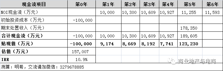 (3)各年現金流按9%貼現率折現,合計得到物業估值15.7億元;