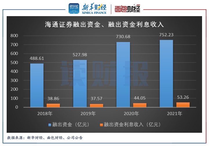 2021年,海通證券融出資金導(dǎo)致的信用減值損失為4.85億元,同比下降52.63%,是當(dāng)期公司信用減值損失金額總體減少的主要原因。當(dāng)期期末,公司融出資金為752.23億元,同比微增近3%。