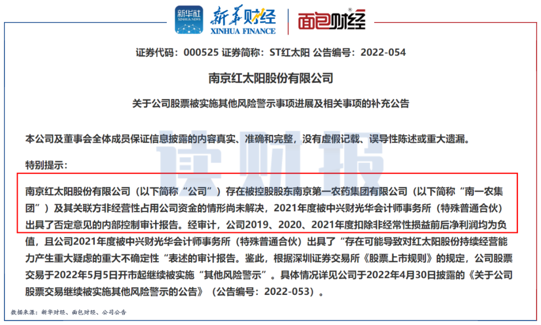 根據(jù)2021年年報,當(dāng)期海通證券和海通資管均身陷與與南京第一農(nóng)藥集團(tuán)有限公司的質(zhì)押式證券回購糾紛案,涉案本金分別為3億元和3.2億元,涉及的質(zhì)押標(biāo)的為ST紅太陽(證券代碼:000525)。2021年6月,南一農(nóng)公司已被法院裁定破產(chǎn)重整。