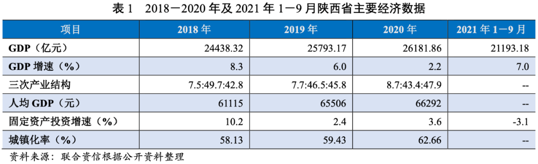 陜西省地處中國內陸腹地,文化歷史悠久,資源豐富。陜西省經濟總量和人均GDP處于全國中游水平。2018-2020年,陜西省經濟持續增長,產業結構更趨優化,固定資產投資保持增長,但受新冠肺炎疫情影響,陜西省經濟增速有所放緩。2021年1-9月,陜西省經濟呈恢復性增長,但固定資產投資后勁不足,整體投資呈負增長狀態。