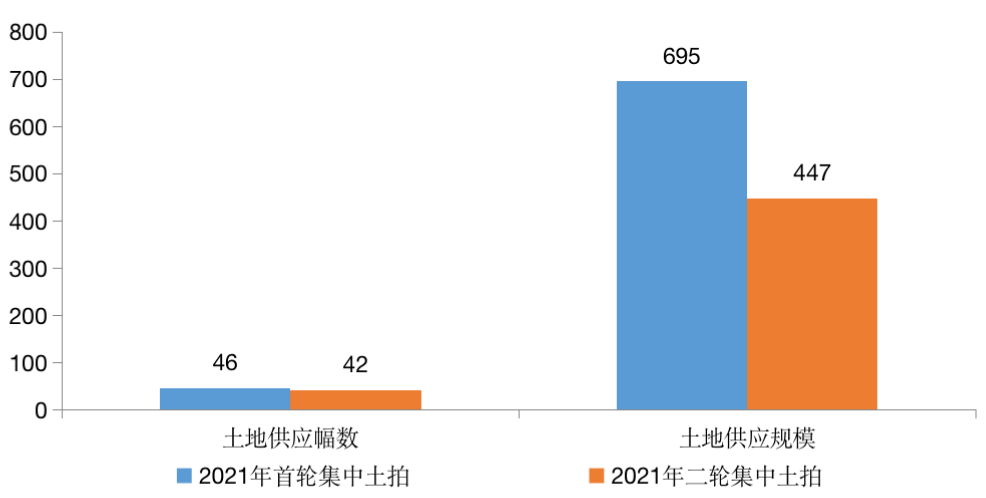 表:重慶2021年兩次集中供地規模對比(幅,萬平方米)