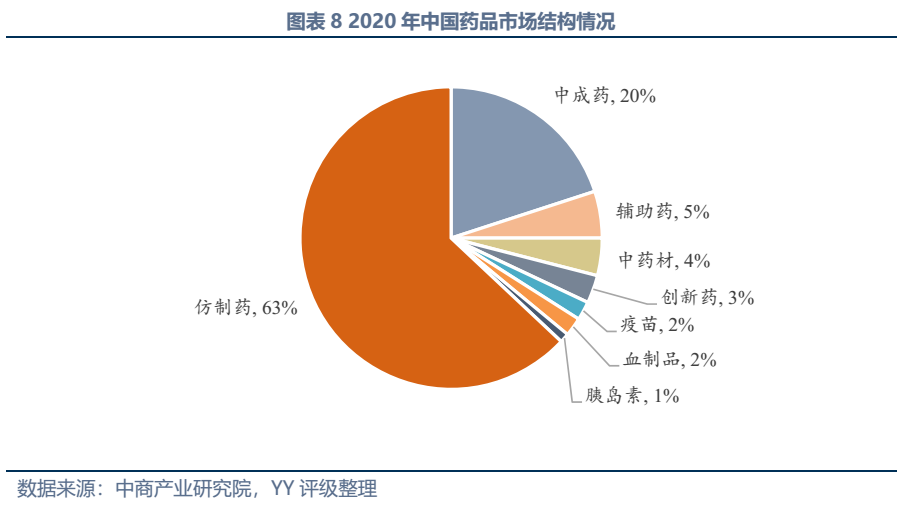 近年來,我國醫(yī)藥市場規(guī)模保持較快速度增長, 2021年達19,220億元。不過我國醫(yī)藥行業(yè)長期處在相對粗放發(fā)展的階段,表現(xiàn)為行業(yè)集中度較低,低端、劣質(zhì)仿制藥較多且臨床需求高的藥品在專利過期后仍無仿制的現(xiàn)象屢有發(fā)生,在此背景下集中采購、醫(yī)??刭M、一致性檢驗等政策出臺推進制藥行業(yè)逐步規(guī)范化,政策引導(dǎo)下資金實力和研發(fā)實力強的企業(yè)更具發(fā)展前景。