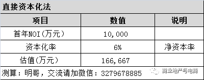例1:某購物中心NOI值1億,資本化率6%