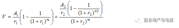 其中A1為現有租約租金收益,r1為租期內資本化率,n1為現有租約剩余租期;A2為市場租金水平,r2為租期外資本化率,n2為租約外剩余土地年期。