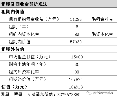 通過計算商業地產租期內和租期外的價值后加總形成整體物業的價值,