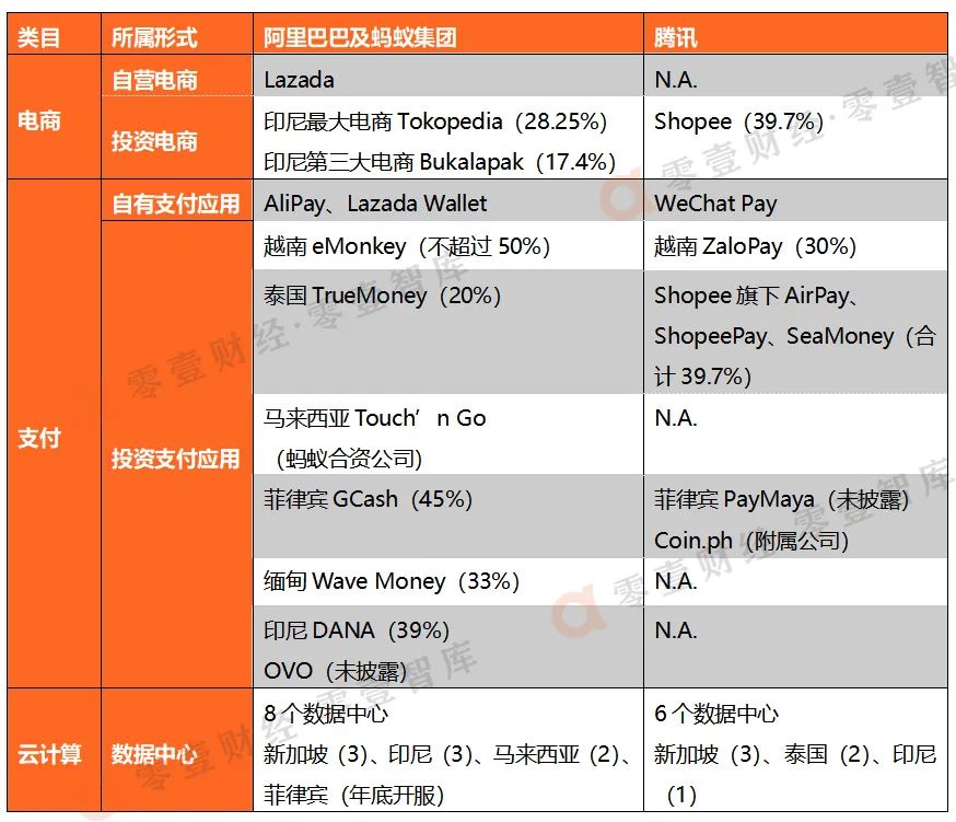 阿里和騰訊在東南亞的競爭涉及互聯網業務、金融業務和IT業務等,競爭服務則主要集中在電商服務、支付服務和云計算服務上。