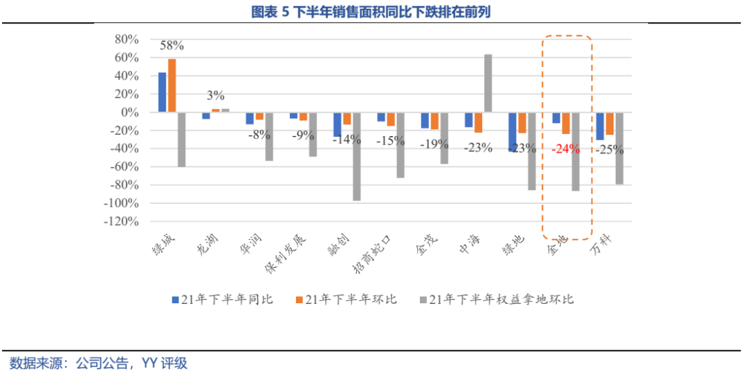 從邊際看,21年下半年銷(xiāo)售、拿地均斷崖式下降,下滑幅度位列非民企前列,全年高溢價(jià)、低權(quán)益比拿地依舊常見(jiàn),經(jīng)營(yíng)邊際有所弱化,但另一方面融資未見(jiàn)受阻。政策收緊與需求收縮對(duì)金地的經(jīng)營(yíng)和財(cái)務(wù)影響并不對(duì)稱。