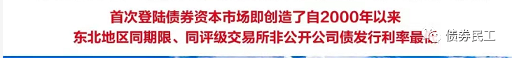 5、強(qiáng)調(diào)特定時(shí)間+特定區(qū)域+特定期限+特定評(píng)級(jí)+特定產(chǎn)品利率最低的海報(bào),比如發(fā)行利率創(chuàng)2000年以來(lái)、東北地區(qū)、同期限、同評(píng)級(jí)、非公開(kāi)發(fā)行公司債券最低票面利率。