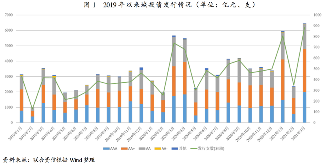 受2021年再融資需求擴(kuò)大及市場情緒修復(fù)的影響,一季度城投債發(fā)行數(shù)量及規(guī)模大幅增長。