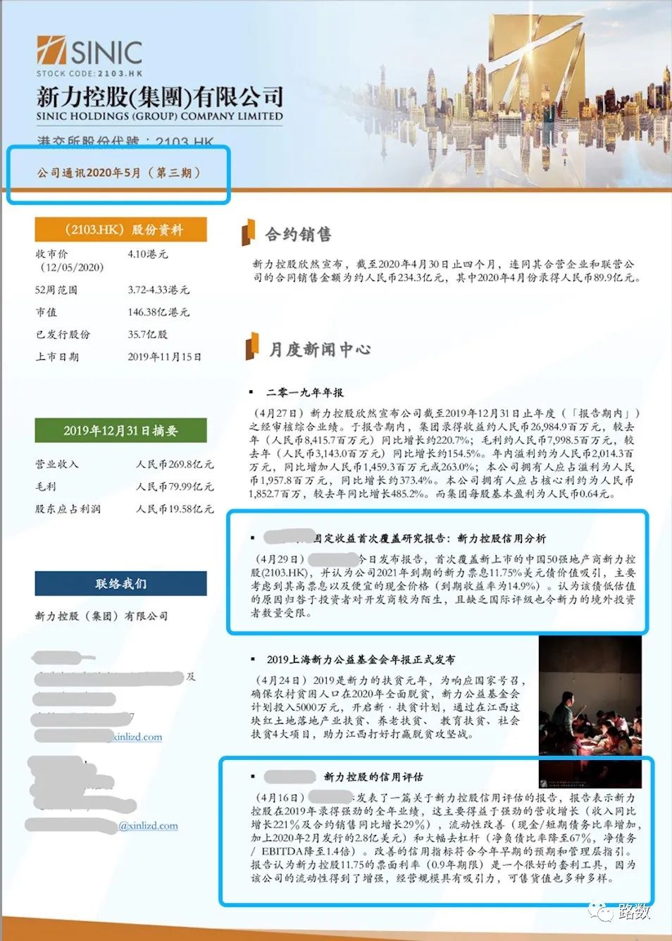 按照官方的通報簡訊,新力地產在2020年4月和機構投資者們密集開了會。關于申請發外債額度的信息,估計是在那時對外釋放的。