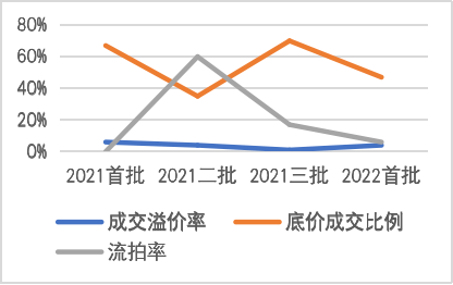 圖2-3:2021-2022合各輪供地成交面積、成交率、底價成交率、流拍率等