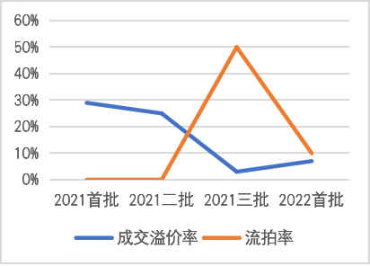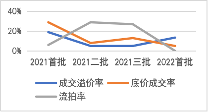 圖2-1:2021-2022北京各輪供地成交面積、成交率、底價成交率、流拍率等