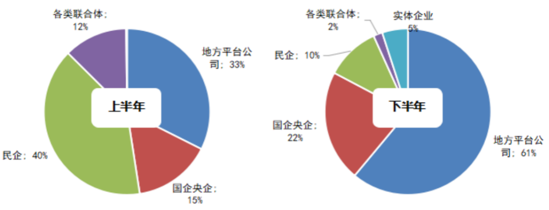 進(jìn)入下半年以后,民企投資態(tài)度發(fā)生大幅轉(zhuǎn)變,拿地不再積極競拍至需要競配建的輪次,因此新增租賃用地建面大幅下降,占比下滑至10%;反之國企央企、地方平臺公司新增租賃用地的比例大幅提升,國企央企提升至22%,地方平臺公司更是提升至61%,成為各地新建租賃用房的主力。