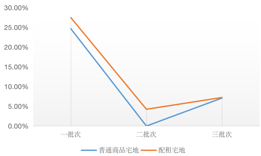 從成交溢價(jià)率來看,配租宅地的平均成交溢價(jià)率往往也高于普通商品住宅地塊,即使在熱度明顯下降的第二批也是如此。