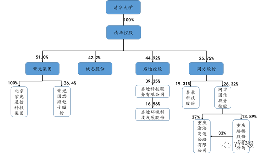 反觀清華控股,自2003年成立清華大學整合校辦企業,成立清華控股以來,隸屬于教育部的清華大學一直掌握著100%的股權,國資背景根正苗紅,未出現民營背景掌握控制權的情況。