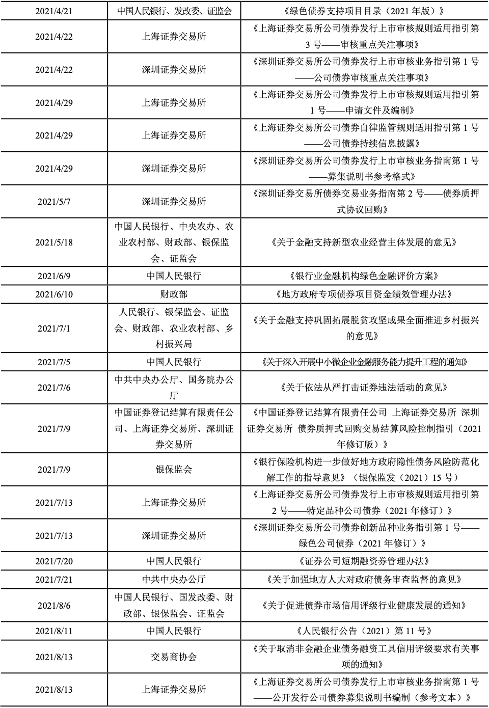規(guī)范創(chuàng)新債券市場(chǎng)發(fā)展。一是完善綠色債券和鄉(xiāng)村振興債券發(fā)行規(guī)則。7月13日,滬深交易所分別發(fā)布《上海證券交易所公司債券發(fā)行上市審核規(guī)則適用指引第2號(hào)——特定品種公司債券(2021年修訂)》《深圳證券交易所公司債券創(chuàng)新品種業(yè)務(wù)指引第1號(hào)——綠色公司債券(2021年修訂)》等業(yè)務(wù)指引,進(jìn)一步提高了綠色公司債券募集資金使用要求,確保募集資金用于綠色產(chǎn)業(yè)領(lǐng)域;新增“碳中和綠色公司債券”等綠色債券子品種的募集資金用途及信息披露要求指引;將原“扶貧公司債券”整體修訂為“鄉(xiāng)村振興公司債券”,明確了鄉(xiāng)村振興公司債券發(fā)行主體、募集資金用途及信息披露等相關(guān)安排。本次修訂有助于進(jìn)一步完善公司債券創(chuàng)新品種規(guī)則體系,規(guī)范創(chuàng)新債券市場(chǎng)發(fā)展。二是規(guī)范綠色債券評(píng)估認(rèn)證。9月24日,綠標(biāo)委發(fā)布《綠色債券評(píng)估認(rèn)證機(jī)構(gòu)市場(chǎng)化評(píng)議操作細(xì)則(試行)》及配套文件,從綠標(biāo)委對(duì)評(píng)估認(rèn)證機(jī)構(gòu)實(shí)施市場(chǎng)化評(píng)議和自律管理、市場(chǎng)化評(píng)議流程等方面規(guī)范評(píng)估認(rèn)證機(jī)構(gòu)行為,是國內(nèi)首份針對(duì)綠色債券評(píng)估認(rèn)證機(jī)構(gòu)的自律規(guī)范文件,有助于提高評(píng)估認(rèn)證質(zhì)量,推動(dòng)綠債市場(chǎng)健康發(fā)展。