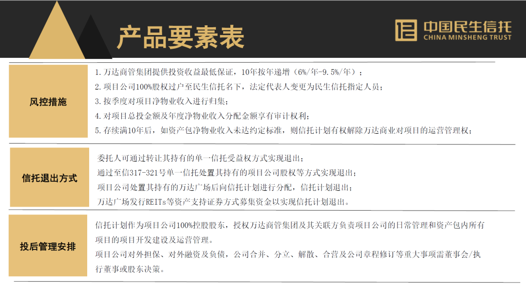 1.萬達(dá)商管集團(tuán)提供投資收益最低保證,10年按年遞增(6%/年-9.5%/年);