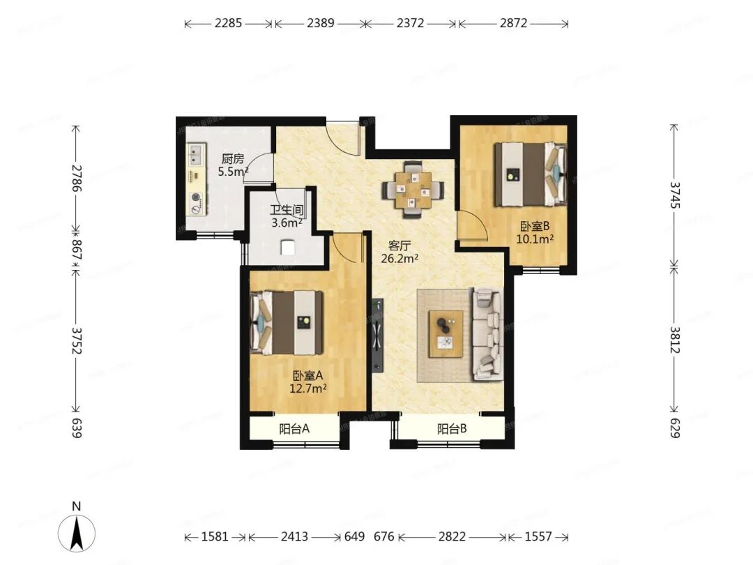 另一套競爭比較激烈的房子,是位于大興區棗園的一套品質剛需,名為東亞馬賽公館,這是一套84.56㎡的雙南向兩居室,樓層非常好,是18層的16層,視野、采光都沒的說,并且本小區是建成于2005年,樓齡很新,物業管理也不錯,小區現狀保存非常好。