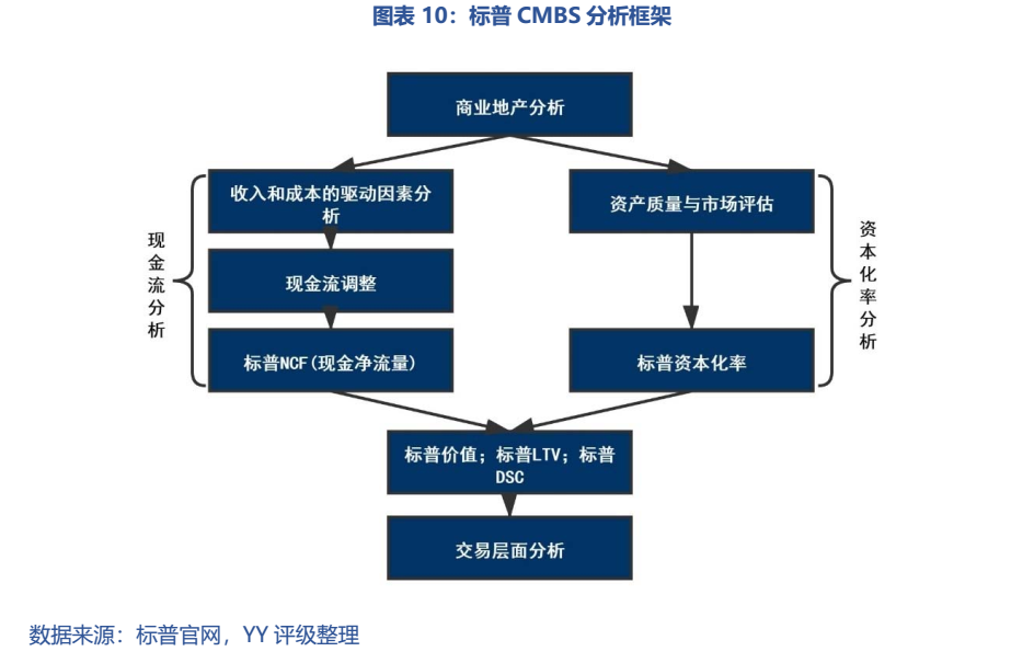 標普的全球CMBS評級較為全面,核心是推導出長期可持續(xù)現金流(標普NCF)的潛力和價值。