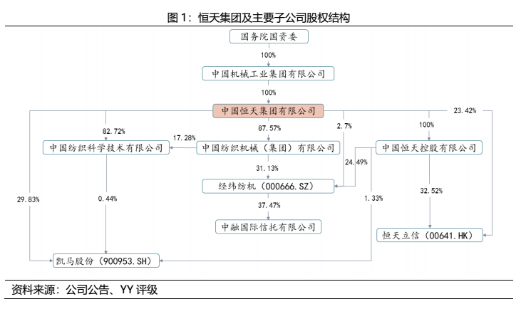 恒天集團為老牌央企,于1998年由原國家紡織工業部所屬中國紡織機械(集團)有限公司、中國紡織工業對外經濟技術合作公司、中國紡織機械和技術進出口有限公司等6家公司組建而成。2017年6月,恒天集團整體并入中國機械工業集團有限公司,不再由國資委直接監管,在央企層級上有所降級。