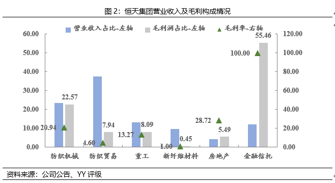 新型纖維材料是公司拓展的新業務,與紡織機械業務有協同效應,但開發成本較大、常規產品產能過剩,盈利能力不穩定,截至2019年末資產規模68.0億元,2019年實現凈利潤凈2.4億元;房地產業務較為穩定,截至2019年末,共有6個在售房地產項目,截至2020年3月末,共有5塊未開發土地,對營業收入形成補充;投資業務方面,恒天投資主要負責為集團內各子公司進行股權投資業務,恒天控股為集團境外融資及資本運作平臺。