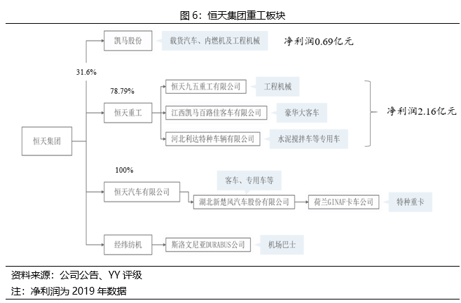 公司重工板塊的經營實體有凱馬股份、恒天九五重工有限公司等,其中上市公司凱馬股份為主要經營主體,主營載貨汽車、內燃機及工程機械。