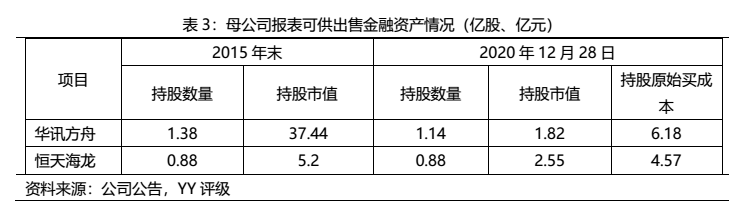 3、母公司持有的可供出售金融資產市值也下挫嚴重,錄得大額虧損。