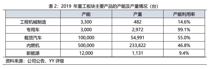重工行業是投資拉動型行業,其市場需求直接受到固定資產投資和工程項目工程量的拉動,需求可持續性弱。因此看到歷年公司主要產品的產量和產能利用率波動很大,而產能是相對固定的,因此經營風險較高。總體來說,近年受新能源汽車退坡等因素的影響,行業整體處于低迷狀態,截至2019年末除專用車外,其他四種產品類型產能利用率都較低,前景黯淡。