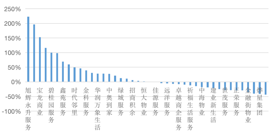 圖:2020年上市物企股價(jià)漲跌幅