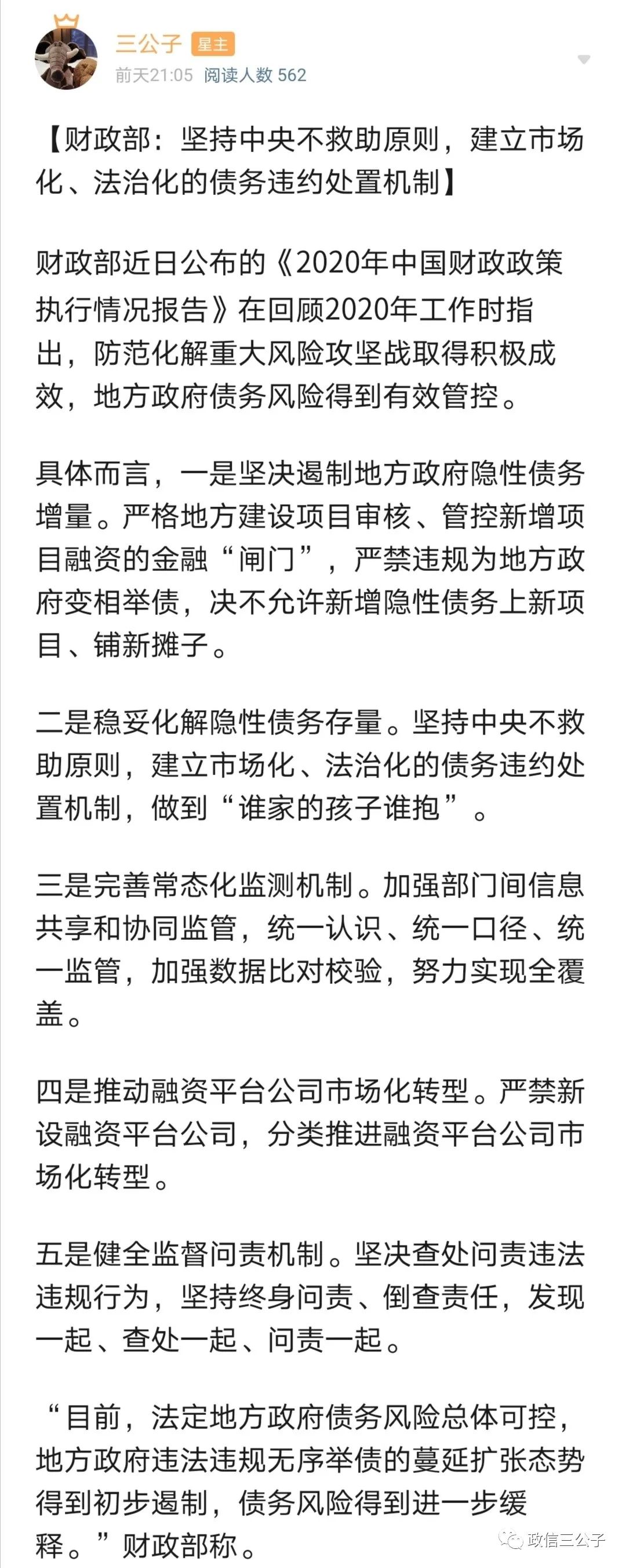 其實只是老生常談,沒有新”內容。財政部一直以來的口徑,就是“中央不兜底”。