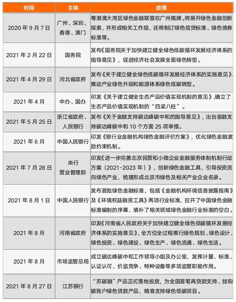 2021年是“十四五”規劃的開局之年,我國在統一綠色金融標準、支持綠色產品創新等方面,推出了一系列政策,推動經濟的綠色化轉型。