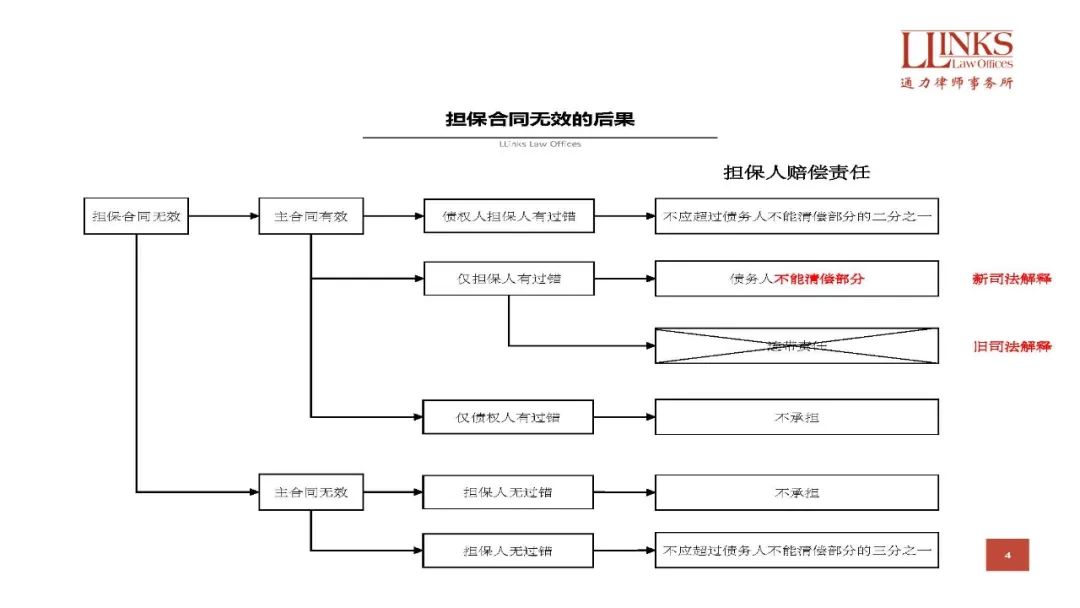 說重大,因為如果我們結合《擔保制度解釋》第25條的規定,就會發現 “對債務人不能清償的部分”的表述屬于典型的“一般保證”。換言之,主合同有效的情況下,如果債權人無過錯,那么有過錯的擔保人需要承擔的賠償責任從“連帶賠償責任”變為類似于“一般保證”的僅“對債務人不能清償的部分”進行賠償。