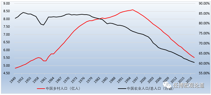 2、城市化率從1978年的17.90%相繼提升至1994年的30.02%、2008年的46.54%和2018年的59.15%,鄉村人口比重則從改革開放時期的84%左右降至目前的60%左右(鄉村人口從1995年的8.60億人降至目前的5.52億人)。