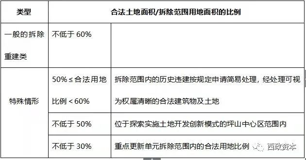 在規(guī)劃層面判斷項目的可行性之后,項目本體的情況成為了第二個重點關(guān)注對象,比如擬申報更新的用地范圍內(nèi),如果五類地對應(yīng)的合法用地面積無法達(dá)到60%,而且也無法通過非農(nóng)、征返指標(biāo)調(diào)入或飛地等方式解決,那項目連更新立項的條件都無法達(dá)到。