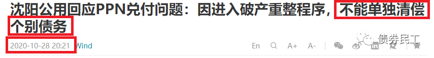 不過(guò)根據(jù)21世紀(jì)經(jīng)濟(jì)報(bào)道的10月28日晚間的報(bào)道,沈陽(yáng)公用回應(yīng)“不能單獨(dú)清償個(gè)別債務(wù)”。