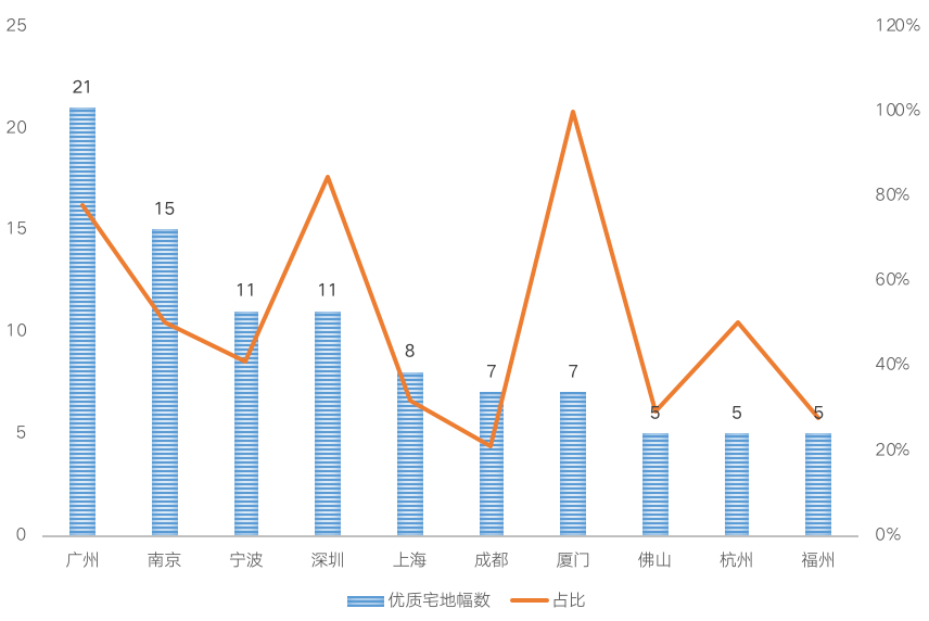 高單價優質地塊供應TOP10城市(按幅數)
