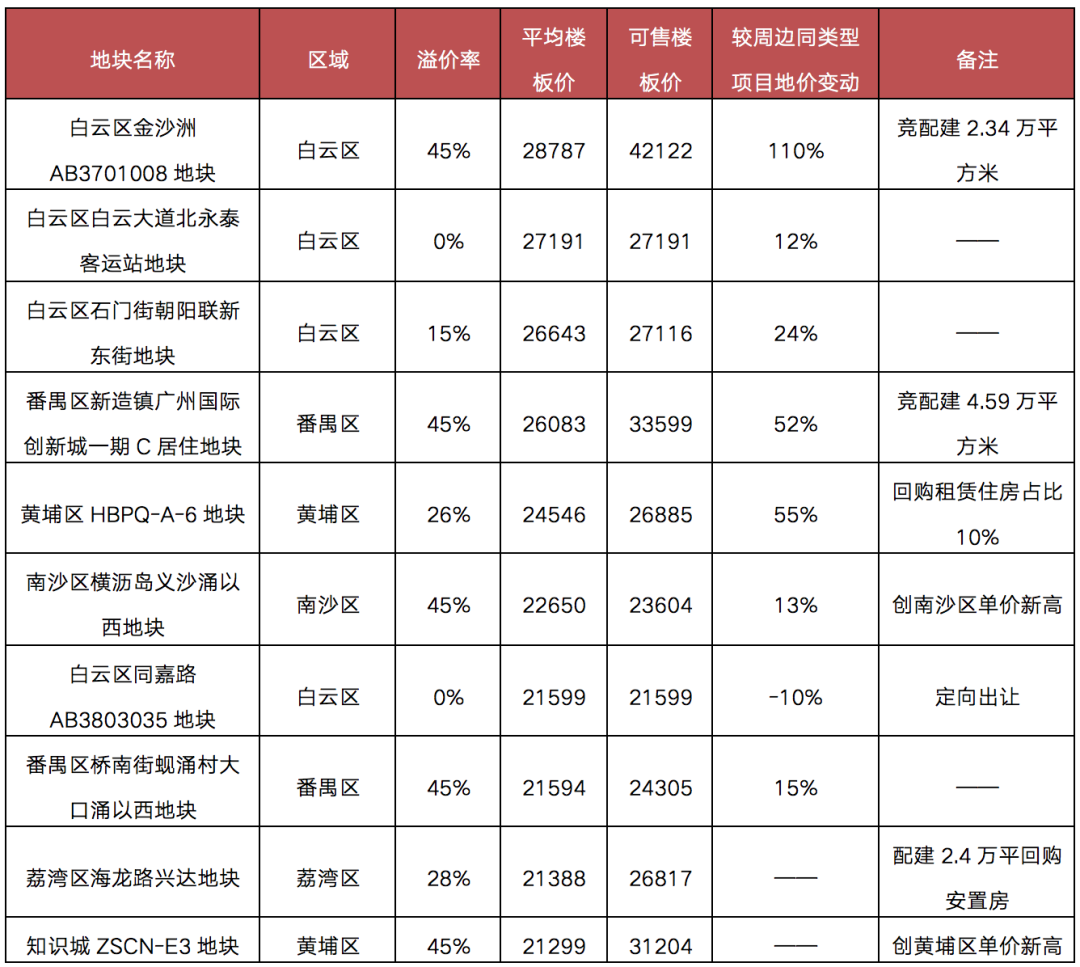 注:荔灣區(qū)興達地塊和黃埔區(qū)知識城E3地塊周邊近兩年內(nèi)無同類型宅地成交。