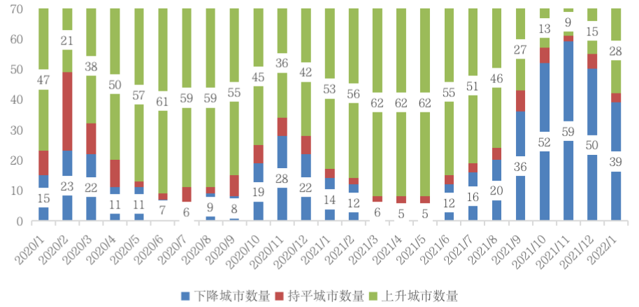2022年2月21日,國家統計局公布了2022年1月份70個大中城市住宅銷售價格統計數據。新建商品住宅銷售價格環比降勢減弱,環比下降城市個數減少。信貸邊際寬松暖風陣陣,廣州、寧波、溫州等多個城市房價止跌回升。