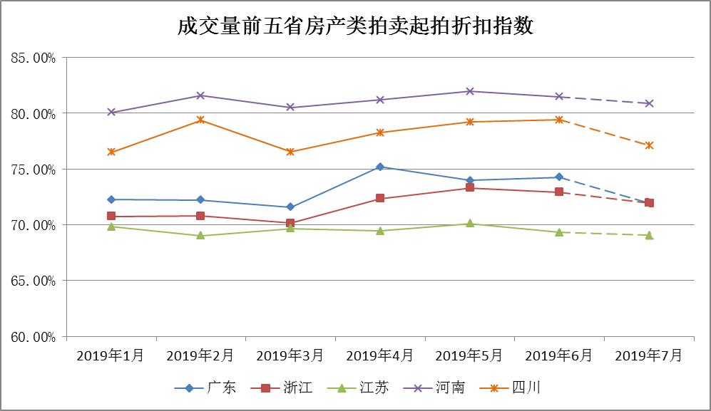 (三)  起拍折扣指數(shù):本月前五省起拍折扣指數(shù)保持平穩(wěn),有小幅下降趨勢