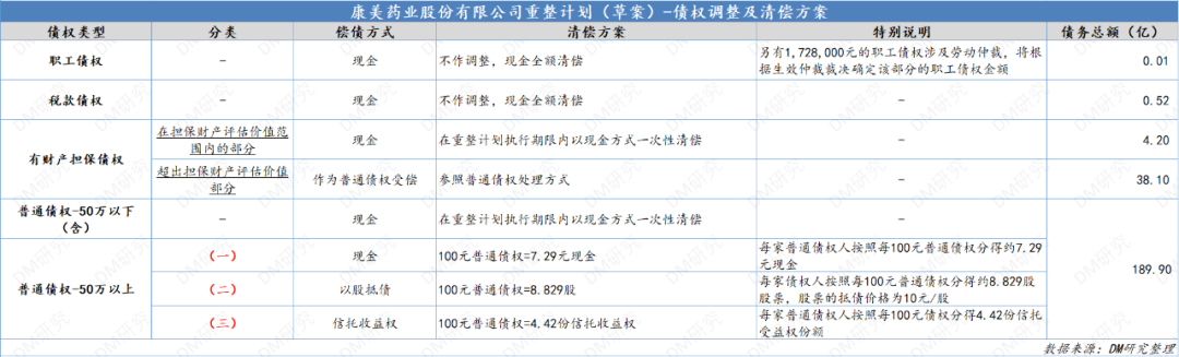 原標(biāo)題: DM研究 | 違約主體重整梳理:康美藥業(yè)重整草案出爐,股抵債價(jià)值“虛高”,清償率存疑