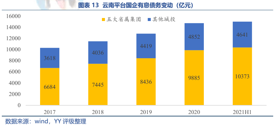 交投、云投、建投、能投、工投和康旅是云南區域投融資重要參與者,也使得產業與城投的邊界難以清晰界定,因此本文將五大省屬集團也納入統計。