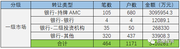 根據已有數據顯示,一級市場總成交戶數1171戶,總成交金額約341億余元,占全年市場交易量56%。其中成交規模最大的為銀行-持牌AMC,成交金額在一級市場中占90.8%,但比去年減少約60億元。