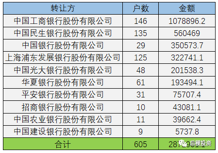 經過數據整理我們發現,工商銀行連續兩年出讓金額保持第一,建設銀行、招商銀行等的出讓規模大幅下降,民生銀行出讓規模上升較多,華夏銀行也略有上升,交通銀行、興業銀行則跌出了前十。