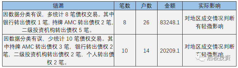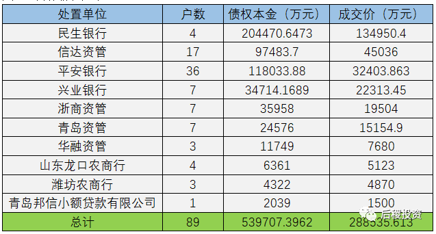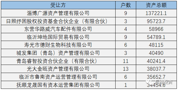 另外需要補充說明的是:本次統計山東省2019年度成交公告共計2394戶,其中債權金額未披露的有418戶。未披露金額的債權成交記錄戶數明細如下: