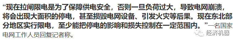 當(dāng)然,自媒體們聞風(fēng)而動(dòng),各種揣測(cè)和解讀,比如“大棋黨”們解讀為國(guó)家正在下“一盤(pán)大棋”;有人解讀為“反擊美國(guó)陰謀”,還有人解讀為“最不壞的方案”的,要么諂媚,要么忽悠,可謂非蠢極壞。實(shí)際上,這次大面積停電,就是各方面的“扭曲”和“失衡”的一次集中爆發(fā),沒(méi)有那么多布局落子間的“談笑風(fēng)生”和瀟灑寫(xiě)意。
