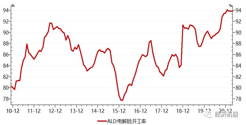 過(guò)去數(shù)年,去產(chǎn)能成為供給側(cè)結(jié)構(gòu)性改革的重心和抓手。工業(yè)主管部門(mén)確定了在鋼鐵、煤炭、水泥、電解鋁、玻璃等幾大產(chǎn)能過(guò)剩重點(diǎn)行業(yè),以壯士斷腕的勇氣,給出每年壓縮產(chǎn)能的具體任務(wù)和指標(biāo)。經(jīng)過(guò)數(shù)年努力,我國(guó)鋼鐵行業(yè)壓縮產(chǎn)能累計(jì)達(dá)到1.5億噸,煤炭行業(yè)退出落后產(chǎn)能超過(guò)10億噸,電解鋁落后產(chǎn)能淘汰近500萬(wàn)噸,超額完成“十三五”任務(wù),絕大部分產(chǎn)能過(guò)剩行業(yè)“過(guò)剩”狀況得到實(shí)質(zhì)性改善,部分大宗商品供過(guò)于求的狀況得到根本緩解,基本處于供求平衡的狀態(tài),如煤炭行業(yè)產(chǎn)能利用率接近100%(圖1),電解鋁行業(yè)產(chǎn)能利用率從2016年1月份最低時(shí)77.8%,上升到當(dāng)前的94%(圖2)。疫情前去產(chǎn)能工作取得了實(shí)質(zhì)性的勝利,歷史任務(wù)已經(jīng)基本完成。