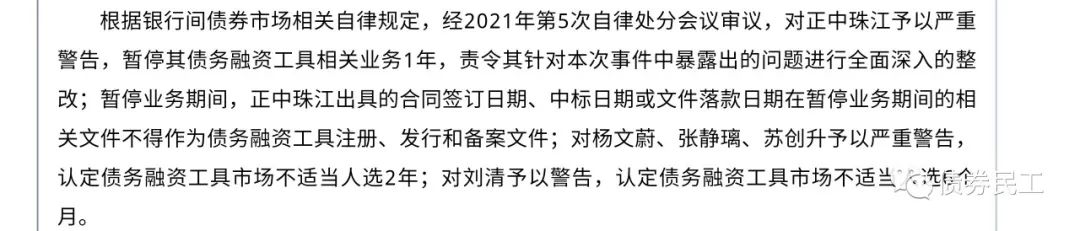 從公告內(nèi)容看,自律處分的內(nèi)容包括暫停債務(wù)融資工具業(yè)務(wù)1年,對責(zé)任人給予處分等,處罰可謂是十分嚴(yán)厲。