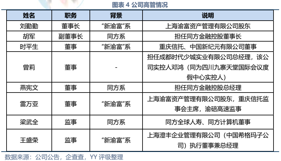 同方國信曾被人稱為重慶金融的“半壁江山”,其以重慶信托為支點,控股和參股多家金融機構,以三峽銀行為核心,一手把握信托、銀行、保險(參股)、基金、券商(參股)等牌照。