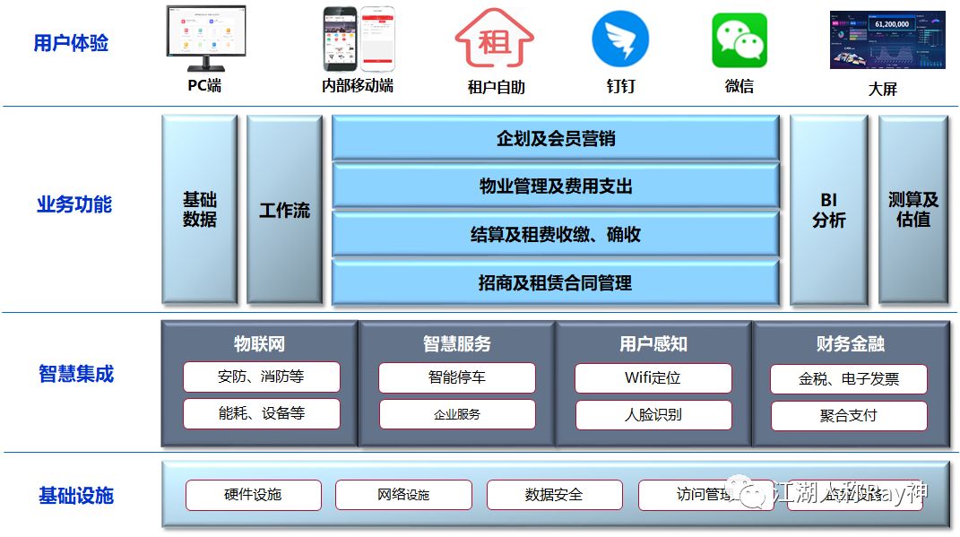 除了以上這些引入技術手段的管理變革外,其實業界還有許多其他方面的科技創新。例如:許多企業借助物聯網的手段來管理安全、能耗和設備維保,進而降低相應的人工成本;有的客戶通過銀行劃扣、第三方金融擔保等方式,轉嫁收繳環節的一些風險和成本;一些購物中心嘗試著新零售領域的一些技術應用,以期從營銷中獲得收益轉化……這里就不再一一介紹了。
