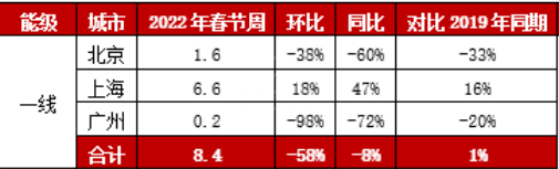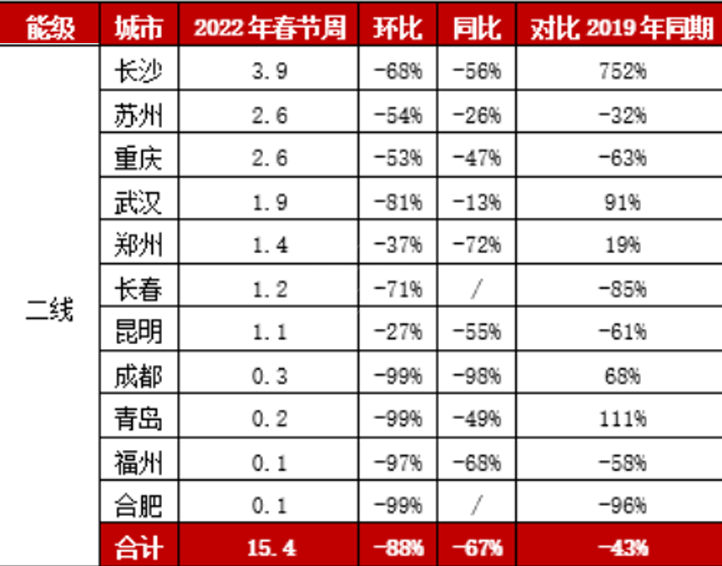 40個(gè)重點(diǎn)城市在春節(jié)兩周的新增供應(yīng)量?jī)H為434.4萬㎡,較2021年同期下降23%,撇除2020年新冠疫情影響與2019年對(duì)比,降幅也達(dá)到20%。